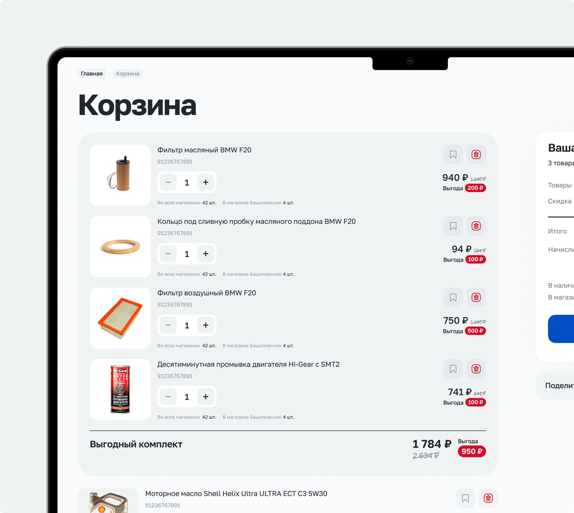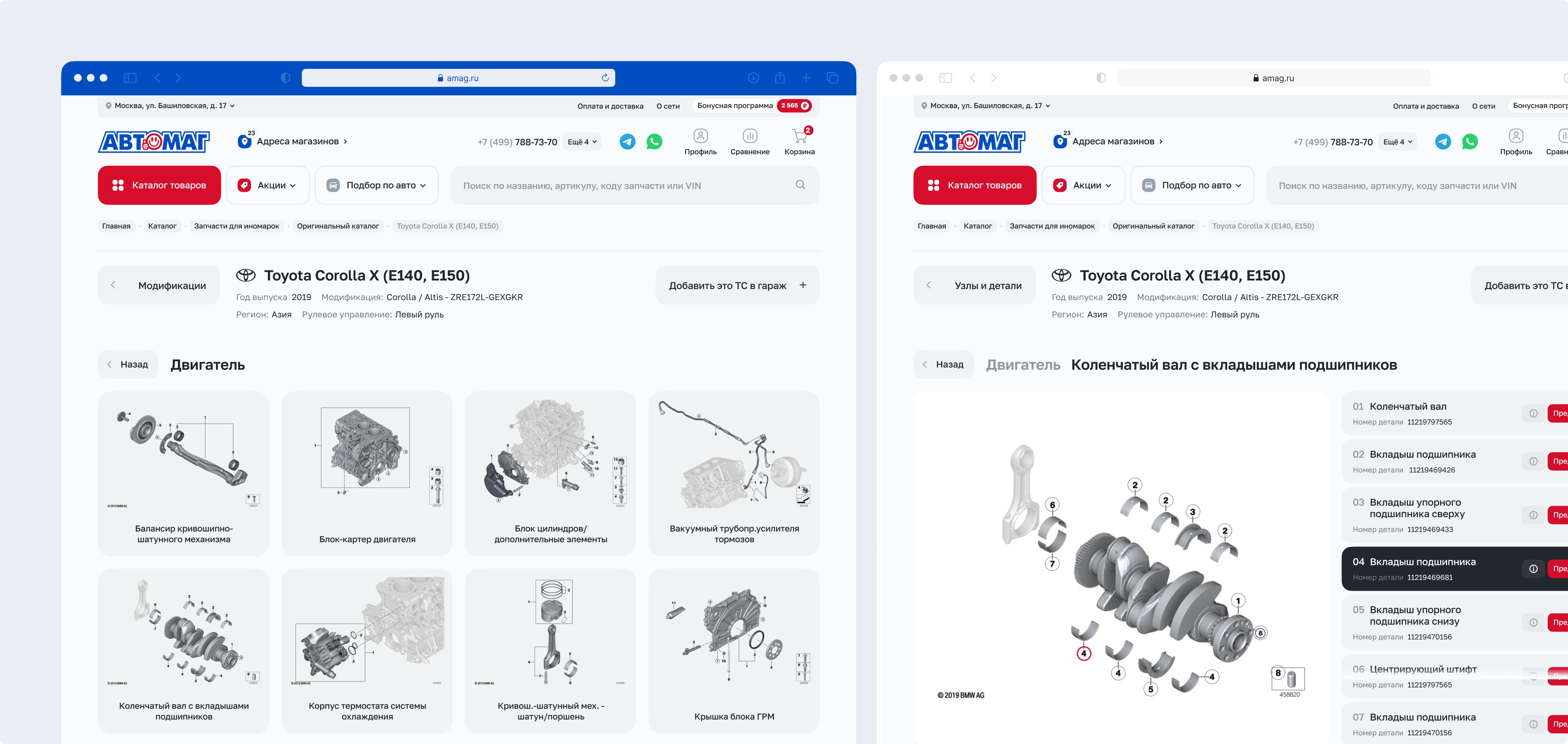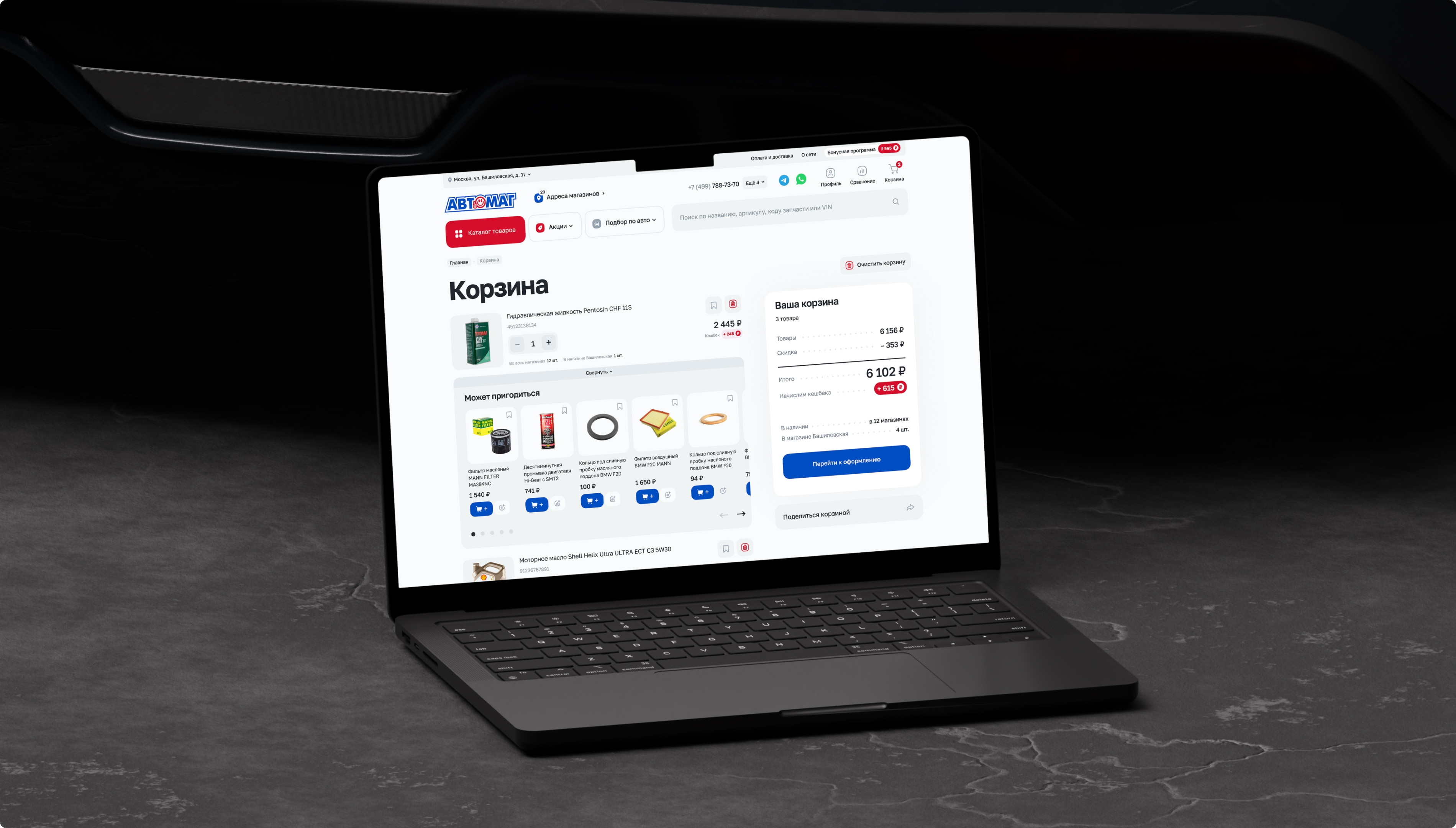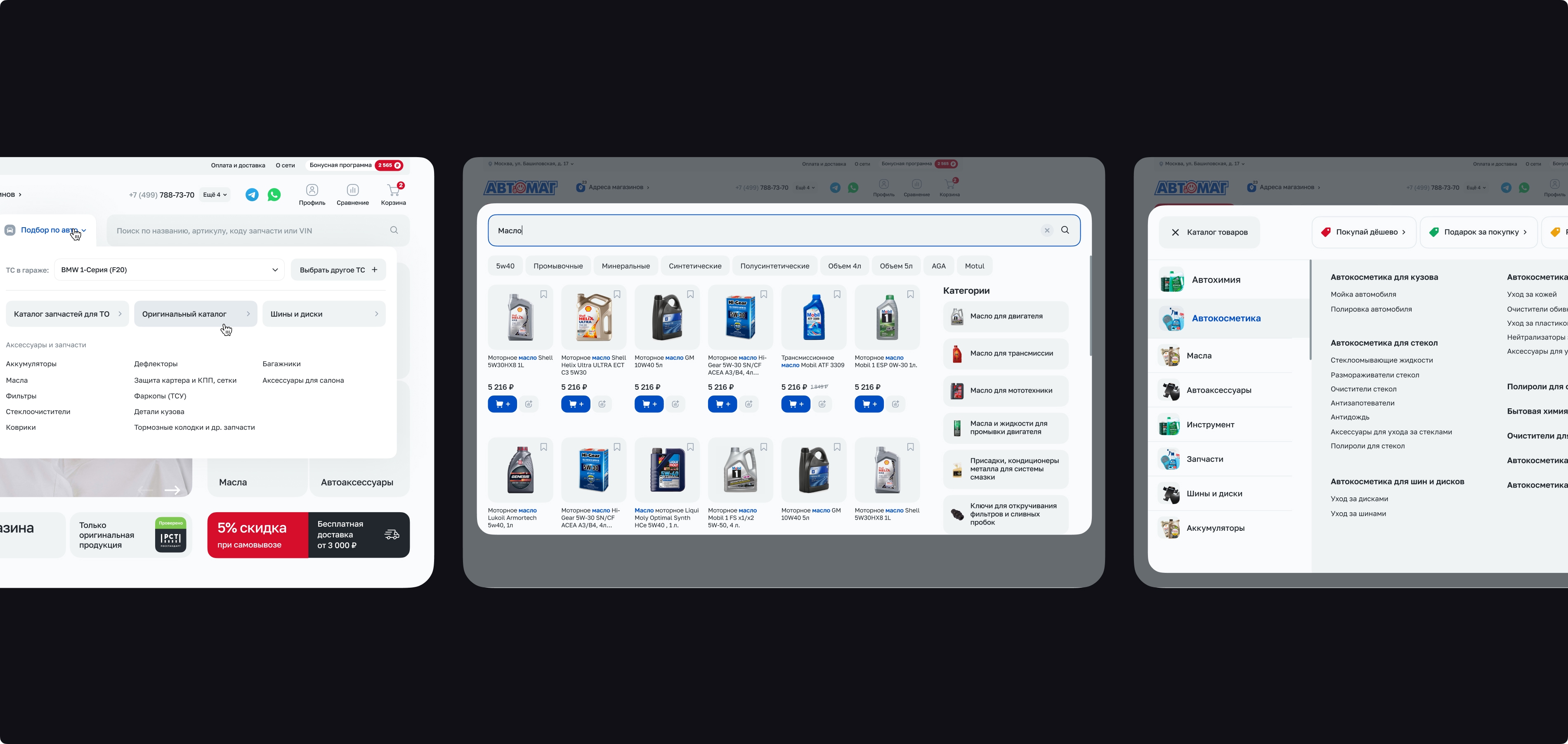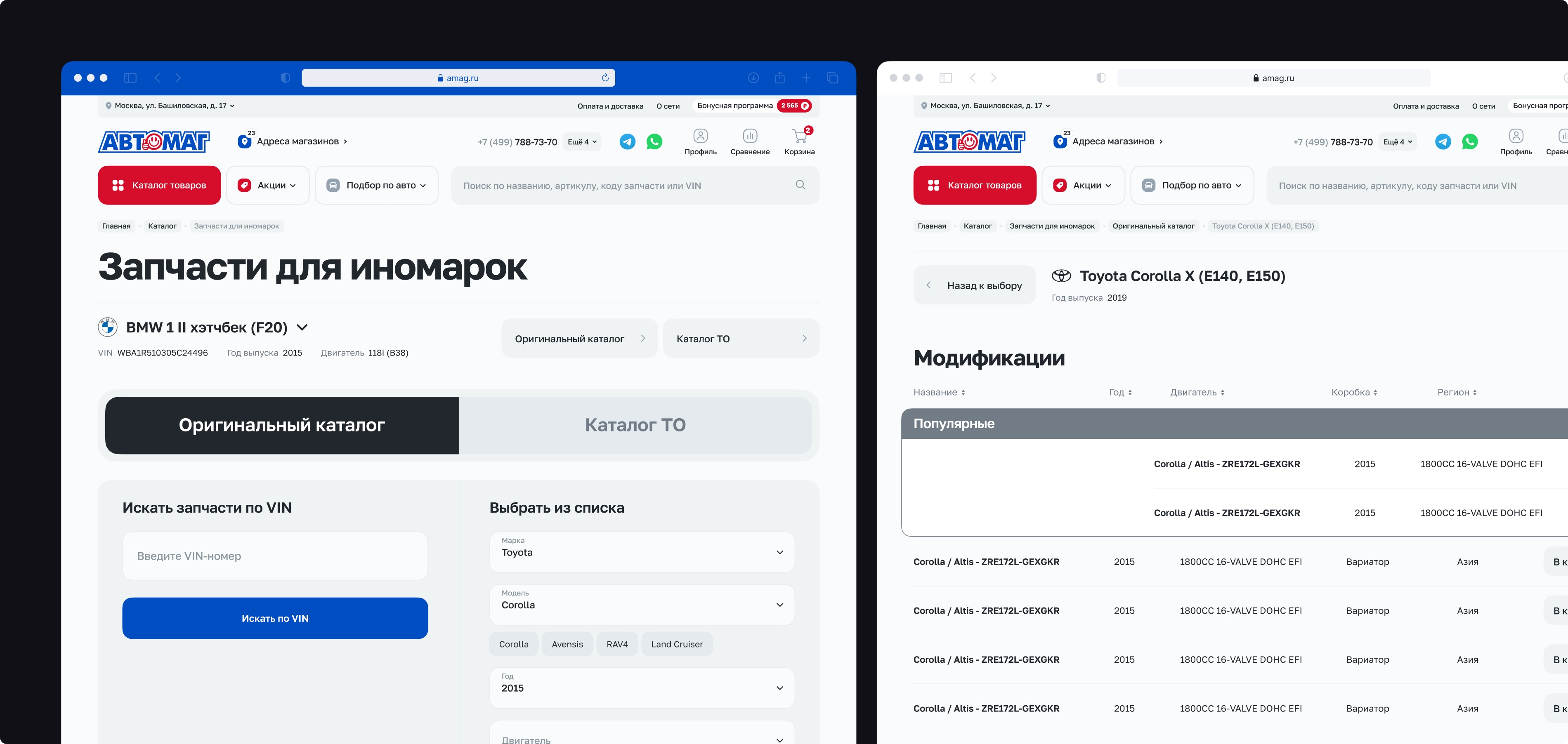 Объединили разрозненные каталоги запчастей и товаров для ТО в один удобный интерфейс, улучшив навигацию и ускорив поиск.