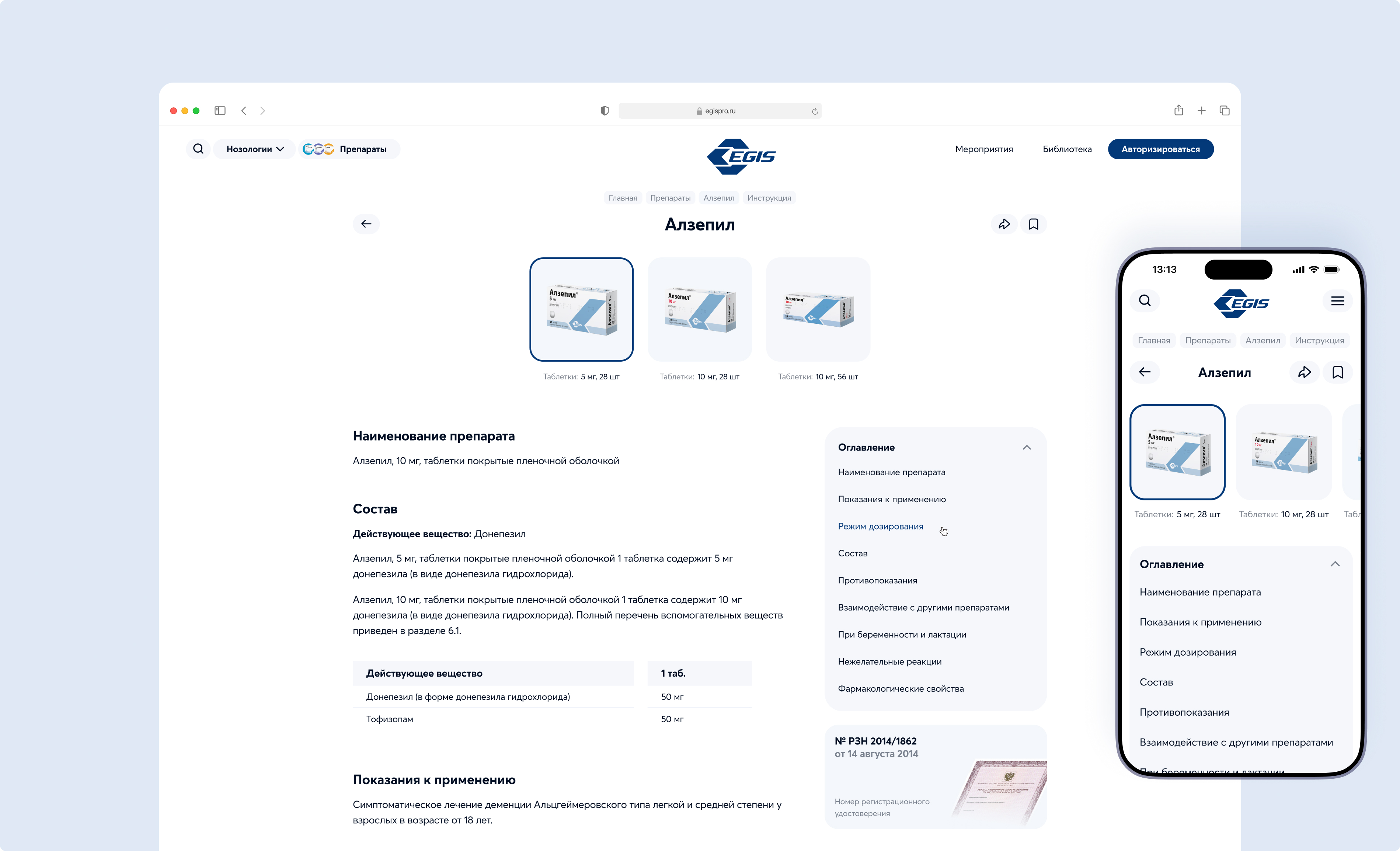 Для каждого препарата добавлены подробные карточки с инструкцией, экспертными статьями и формами выпуска. В карточке представлена исчерпывающая информация о препарате, которая может понадобиться медицинскому специалисту.