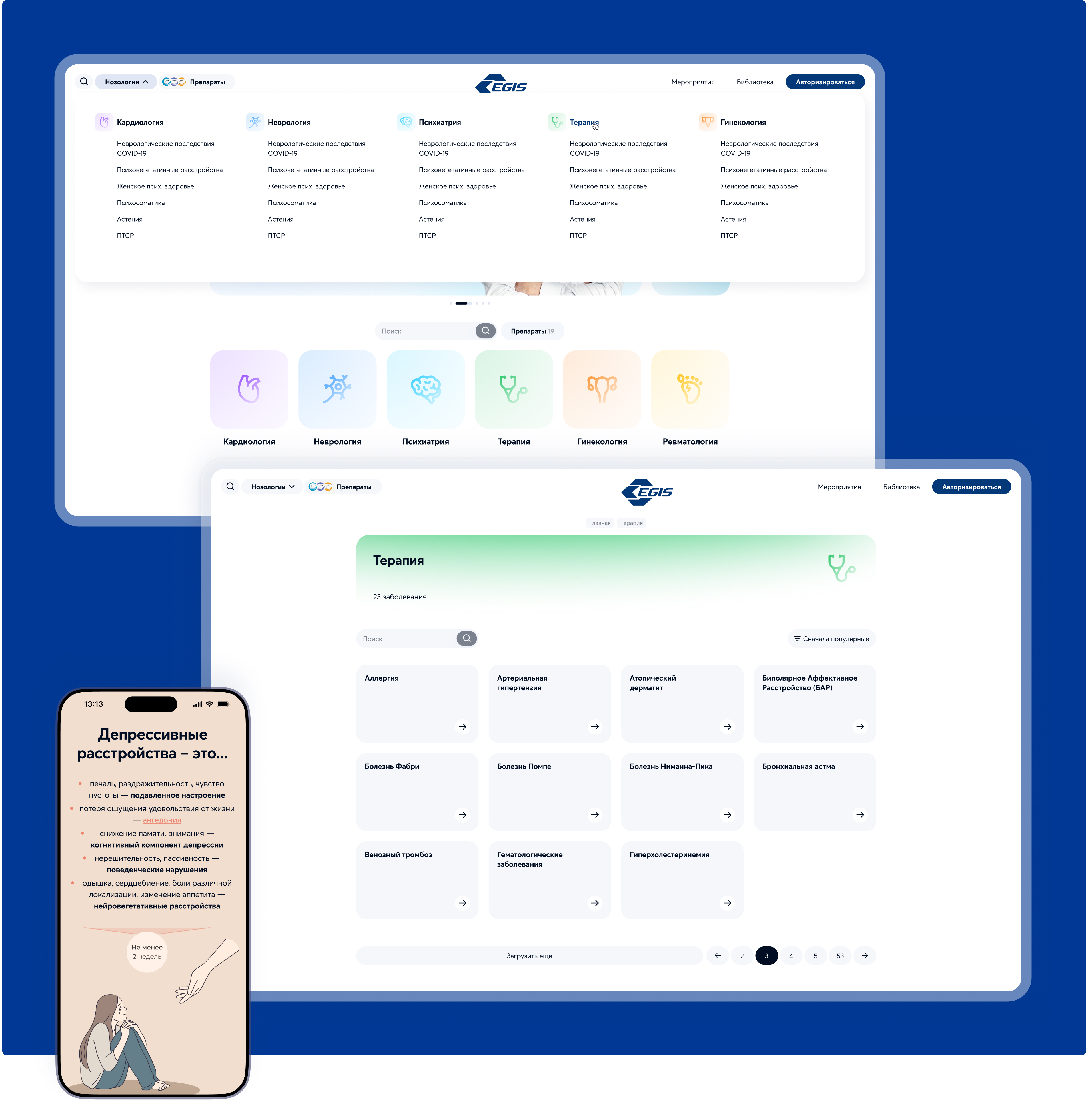 Структурировали весь имеющийся контент и создали удобную навигацию по нозологиям и заболеваниям.