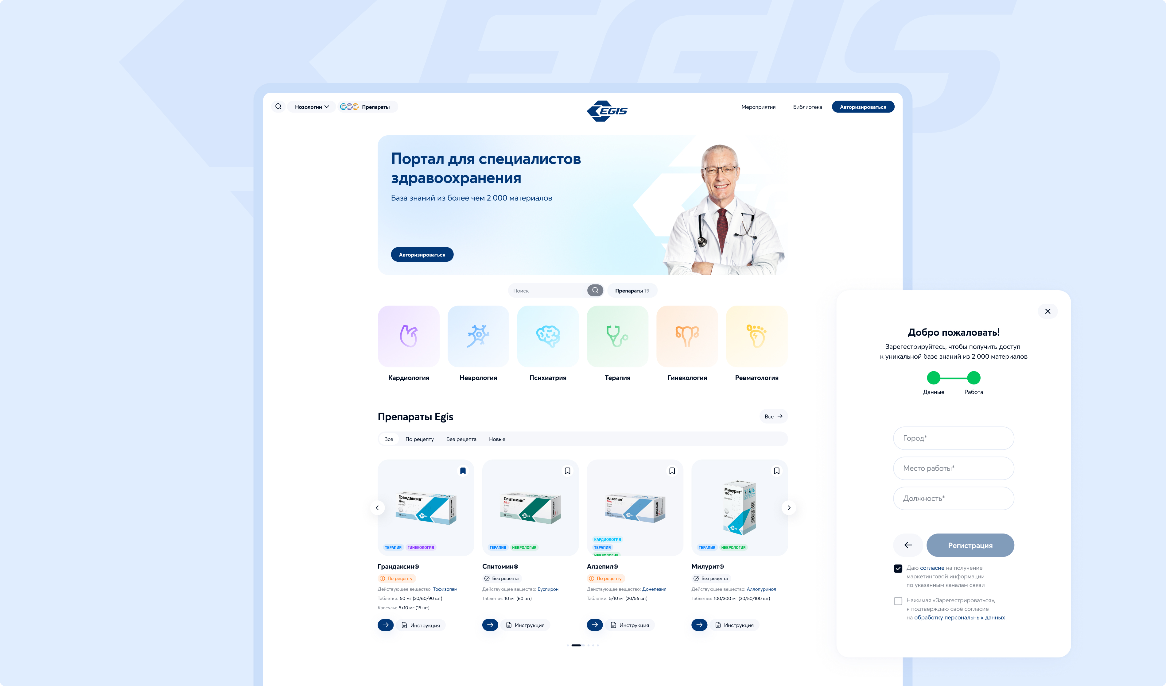 Для ведущего производителя лекарственных препаратов необходимо было создать единый портал для специалистов здравоохранения. Несмотря на то, что у клиента был сайт, можно сказать, что требовался запуск портала c нуля.